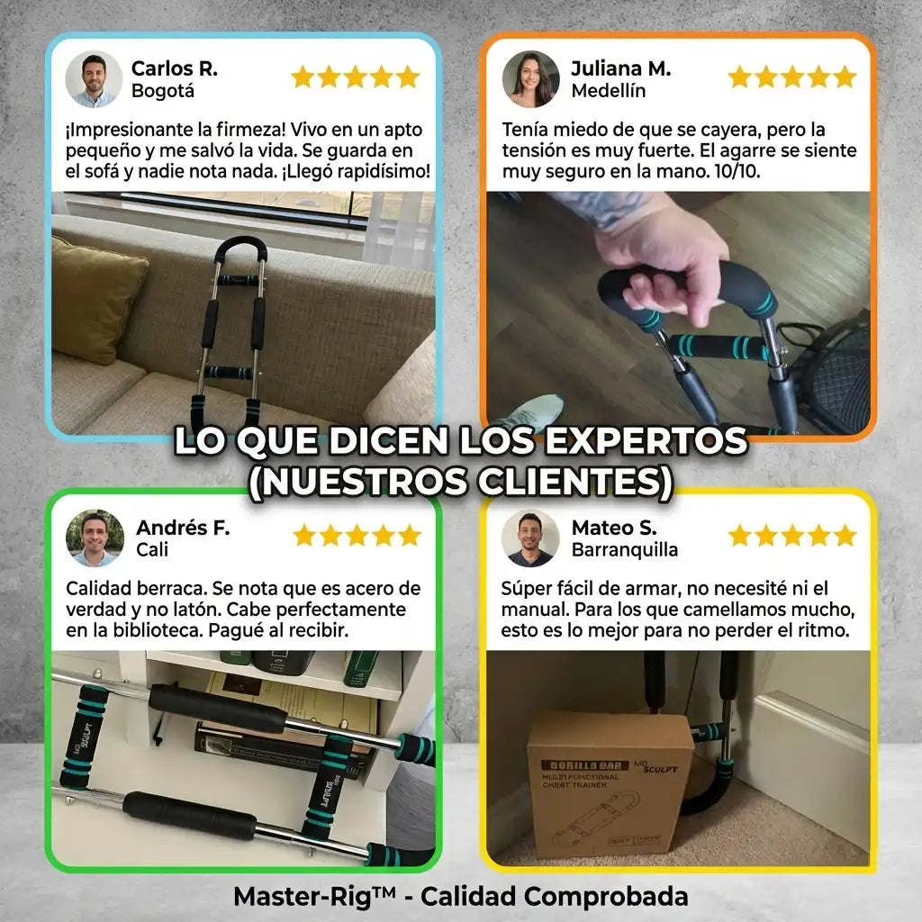 Mientras otras barras solo sirven para una cosa, la Master-Rig™ trabaja 7 grupos musculares distintos